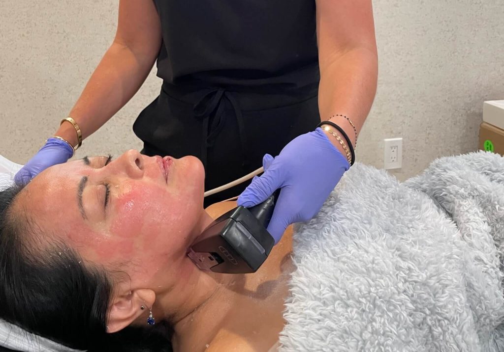 Glacial Glide is a ten minute add on to any facial to reduces pain, swelling, and inflammation, through the power of continuous precision cooling, leaving the patient with calm skin. This is often incorporated after laser treatments or during specific facials that address inflammatory conditions. 10 minutes